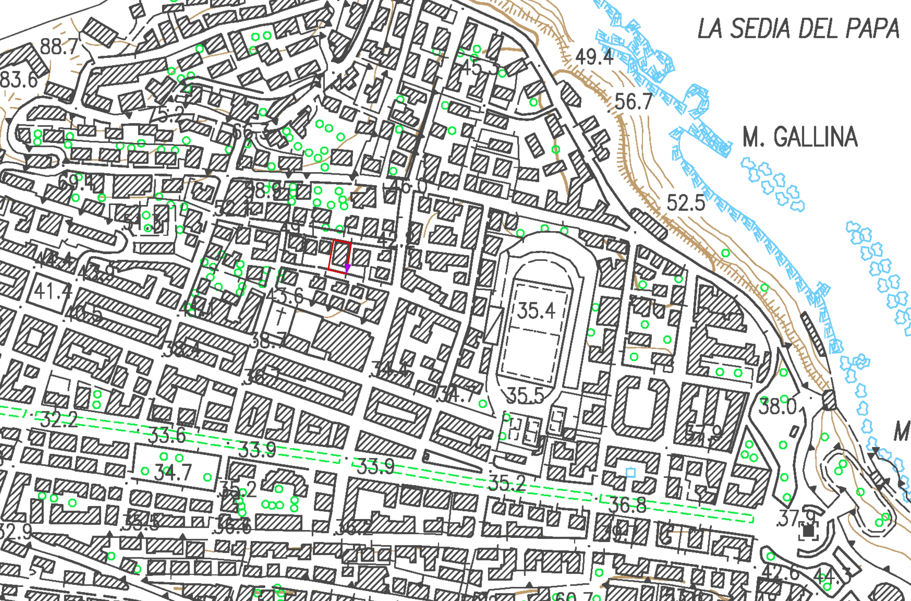 Presente origine Regione Marche – SIGMA TER La numerazione attuale risale al 1968-70. Il mappale 184 ha inglobato il 185. |