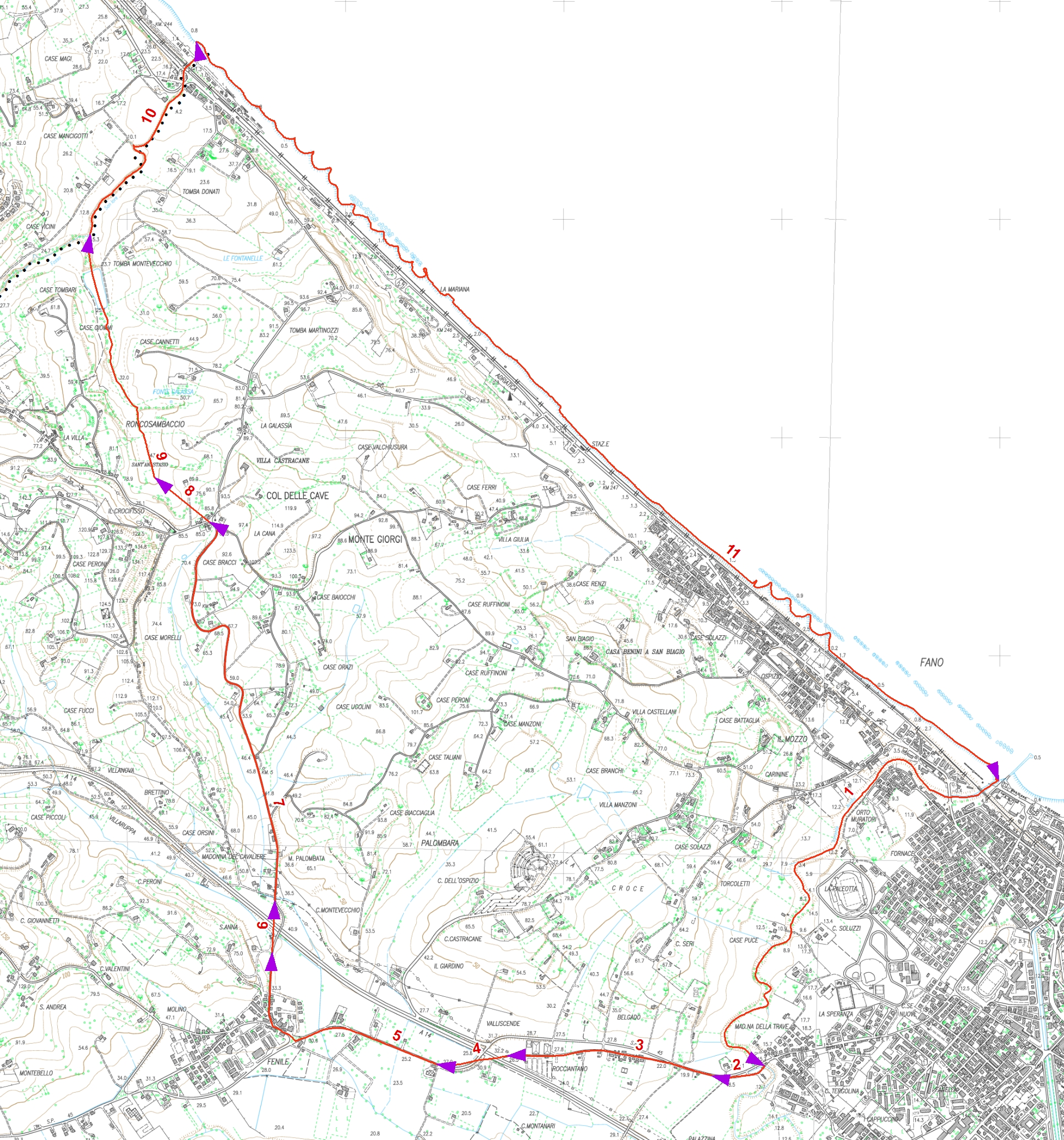 Tale zona è delimitata nel modo seguente: dalla foce del Torrente Arzilla, lungo detto torrente sino all'incrocio con la Strada Provinciale della Trave per Fenile- da Fenile lungo la strada per Roccasanbaccio sino al bivio della scuola - linea retta congiungente detto bivio con l'inizio del Rio della Martinozza (coincidente con l'angolo sud-est della particella 20 del foglio U) - lungo detto fosso sino al torrente Siore - torrente fosso Seiore fino al mare.